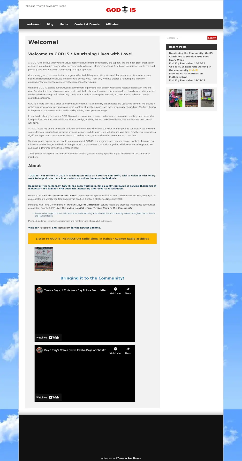 We helped "GOD IS" with marketing material like images for business cards, flyers, event flyers, website hosting, maintenance, backups, hands on support and social media marketing.